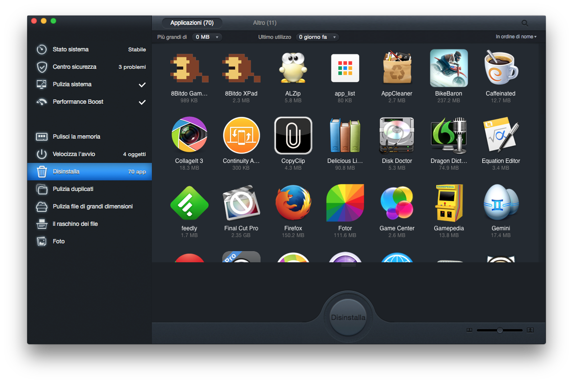 All’interno dello stesso applicativo è poi possibile anche disinstallare facilmente le applicazioni presenti sul proprio HDD. Si tratta, ovviamente, di un’operazione che può essere compiuta anche senza l’intervento di MacBooster 2, ma spesso risulta comunque complessa. Con il software di IObit, invece, basta selezionare l’applicazione da cancellare e cliccare il realtivo pulsante per disfarsi completamente di una determinata app. La suite Macbooster 2, inoltre, ingloba funzioni che solitamente si trovano come caratteristiche di altre applicazioni stand alone. Tra queste, ad esempio, la pulizia di file doppioni, la pulizia di file di grandi dimensioni, la scansione per ritrovare immagini e foto duplicate. Si tratta di piccole funzioni davvero utili, che funzionano egregiamente e, ancora una volta, servono comunque a ripulire il Mac e renderlo più prestante.