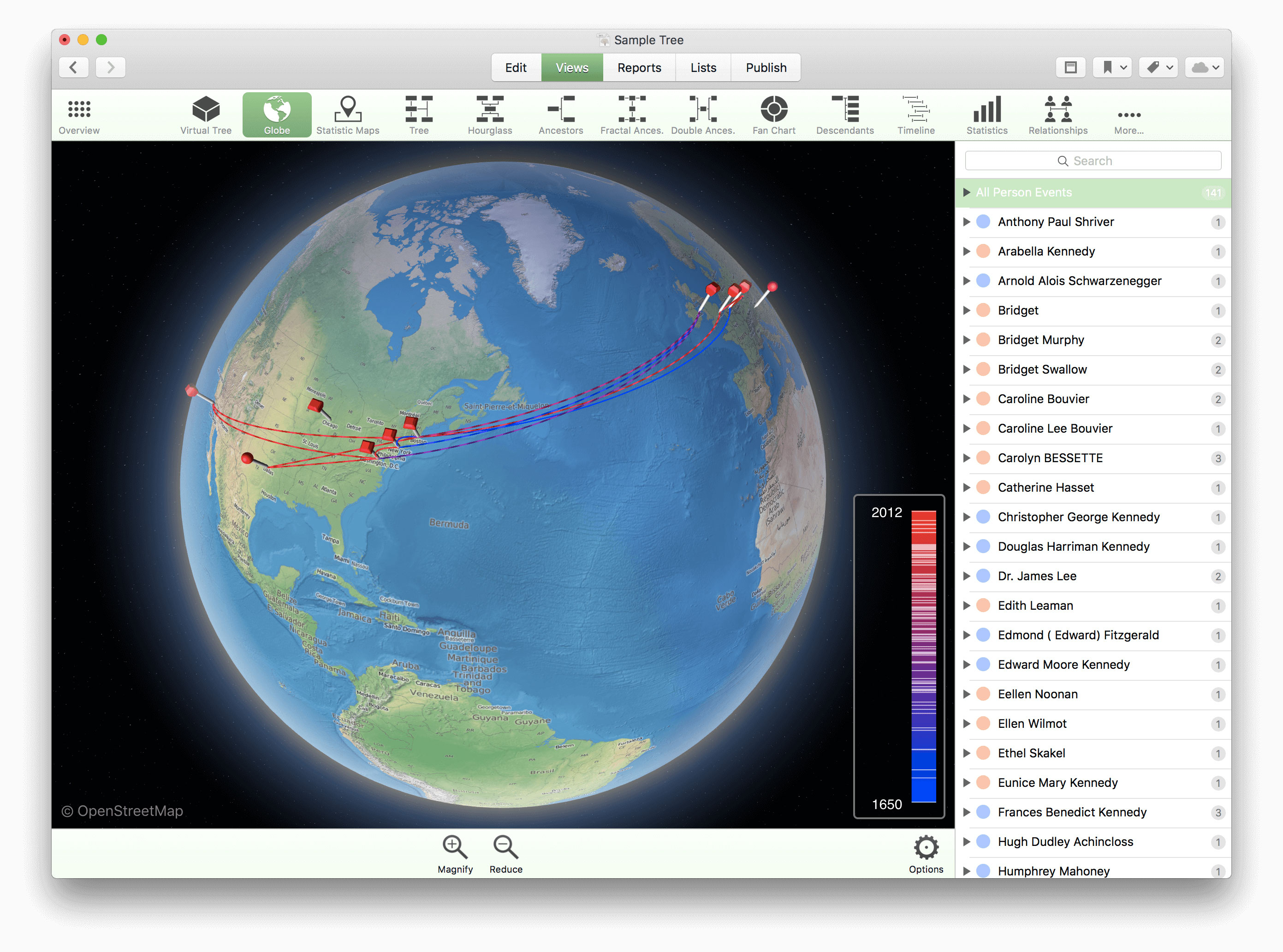 L’applicazione consente di indicare dati, specificare relazioni e mette a disposizione decine di modalità di visualizzazione. Il risultato finale può essere stampato come libro o sito web con pochi click. Gli sviluppatori mettono a disposizione anche un’app companion per iPhone e iPad e le ultime versioni vantano interfaccia rinnovata, filtri “smart”, funzionalità di ricerca avanzata. Tra le peculiarità del programma, l’Interactive Tree con la quale è possibile visualizzare contemporaneamente fino a otto generazione di antenati e discendenti, modificando o aggiungendo dati relativi ai singoli soggetti direttamente da questa modalità di visualizzazione.