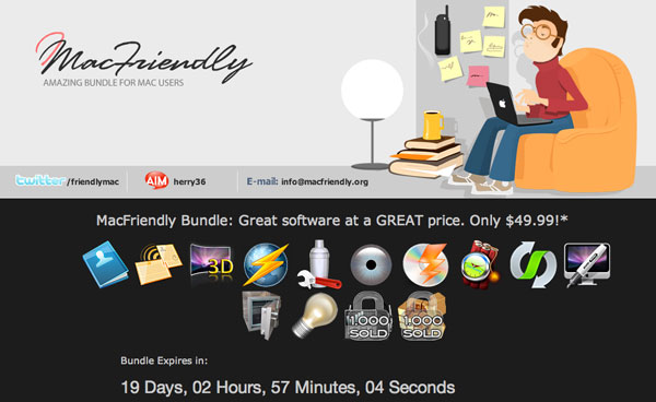 Per gli utenti della Mela è disponibile una nuova promozione che permette di acquistare un pacchetto di utility e programmi che permette di sfruttare al massimo il Mac ad un prezzo particolarmente vantaggioso. Battezzato MacFriendly contiene 12 software per un valore complessivo superiore ai 500 dollari, circa oltre 340 euro circa, per un prezzo di soli 49,99 dollari che corrispondono a soli 34 euro circa.