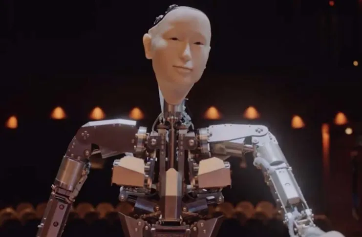 Il filmato è ambientato in una sala concerti in cui si esibisce un’orchestra. Il direttore d’orchestra è impersonato da “Alter3”, un androide reale, dotato di intelligenza artificiale (IA), in grado di eseguire perfettamente il compito per il quale è stato programmato.