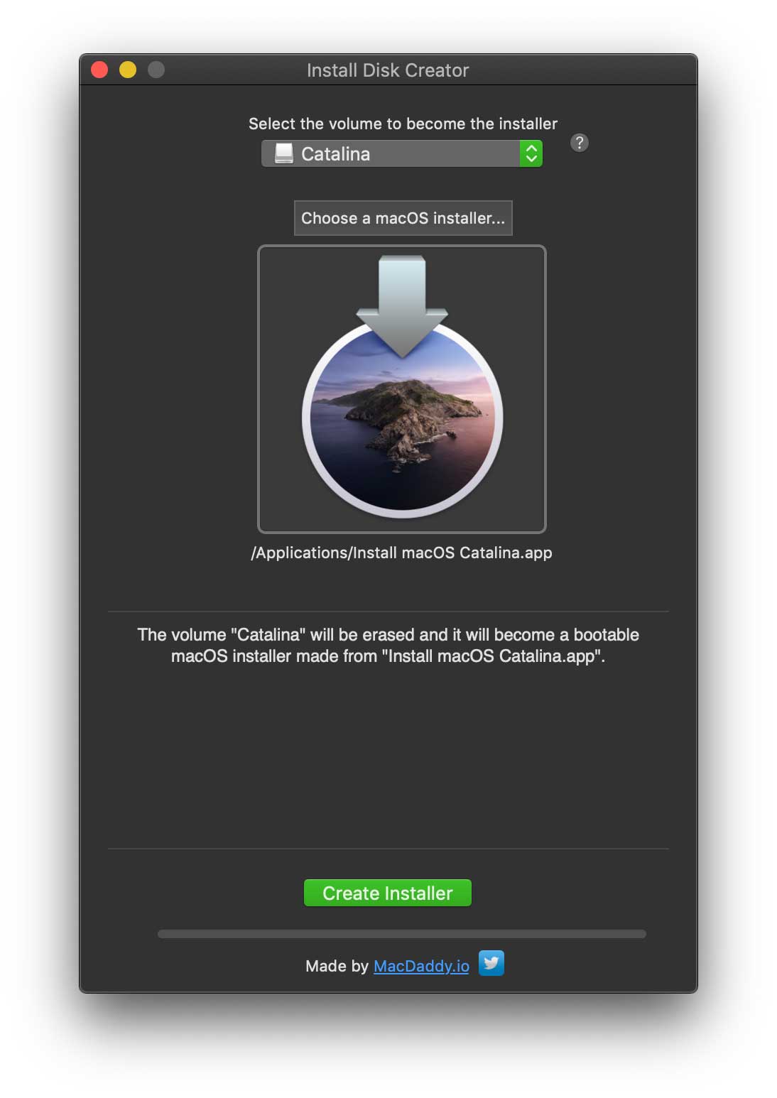Da alcuni di anni è arrivato una sorta di “concorrente” per l’utlity DiskMaker X (nel momento in cui scriviamo non ancora compatibile con macOS Catalina); si chiama “Install Disk Creator” e supporta solo e soltanto OS X 10.11 El Capitan e seguenti (incluso dunque mac OS 10.14 Mojave). La procedura per la creazione di una chiavetta USB partendo dal file di installazione del sistema operativo scaricato dal Mac App Store è simile a quella già vista con DIskMaker. Eccola ad ogni modo descritta di seguito: