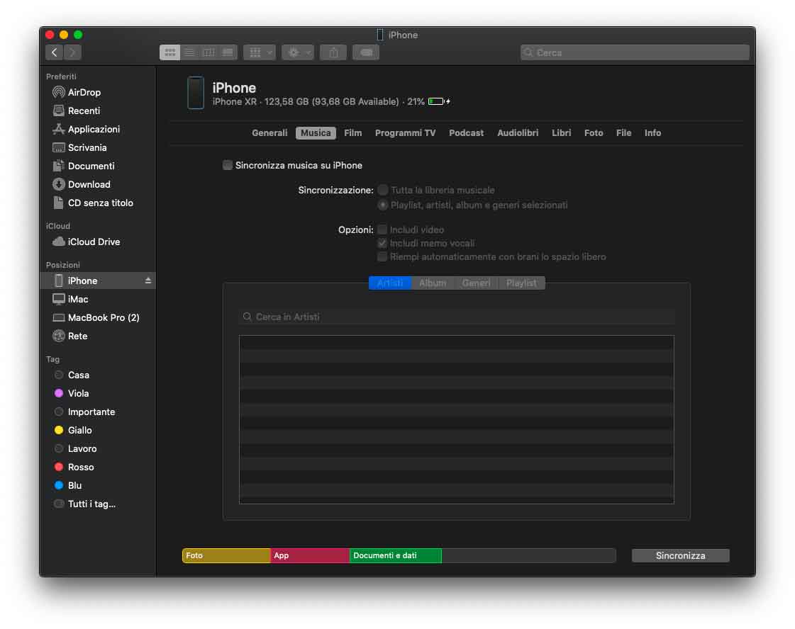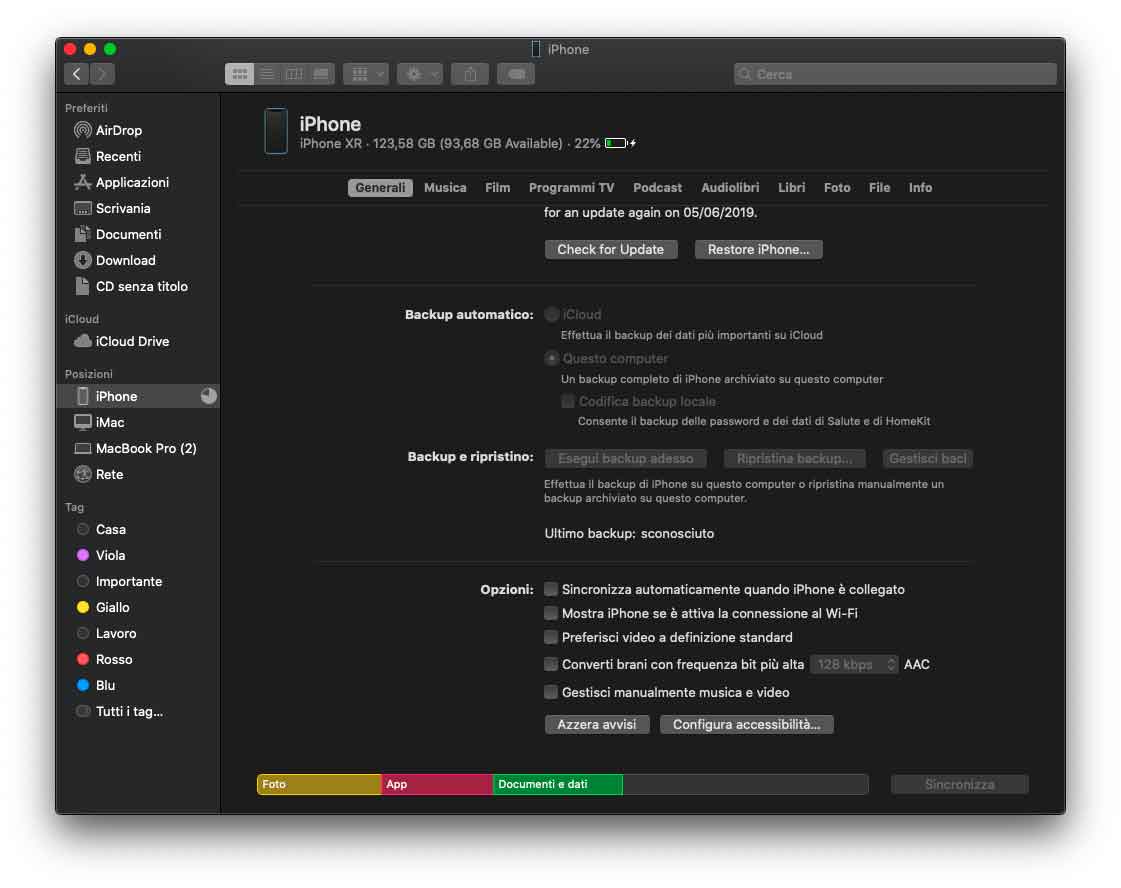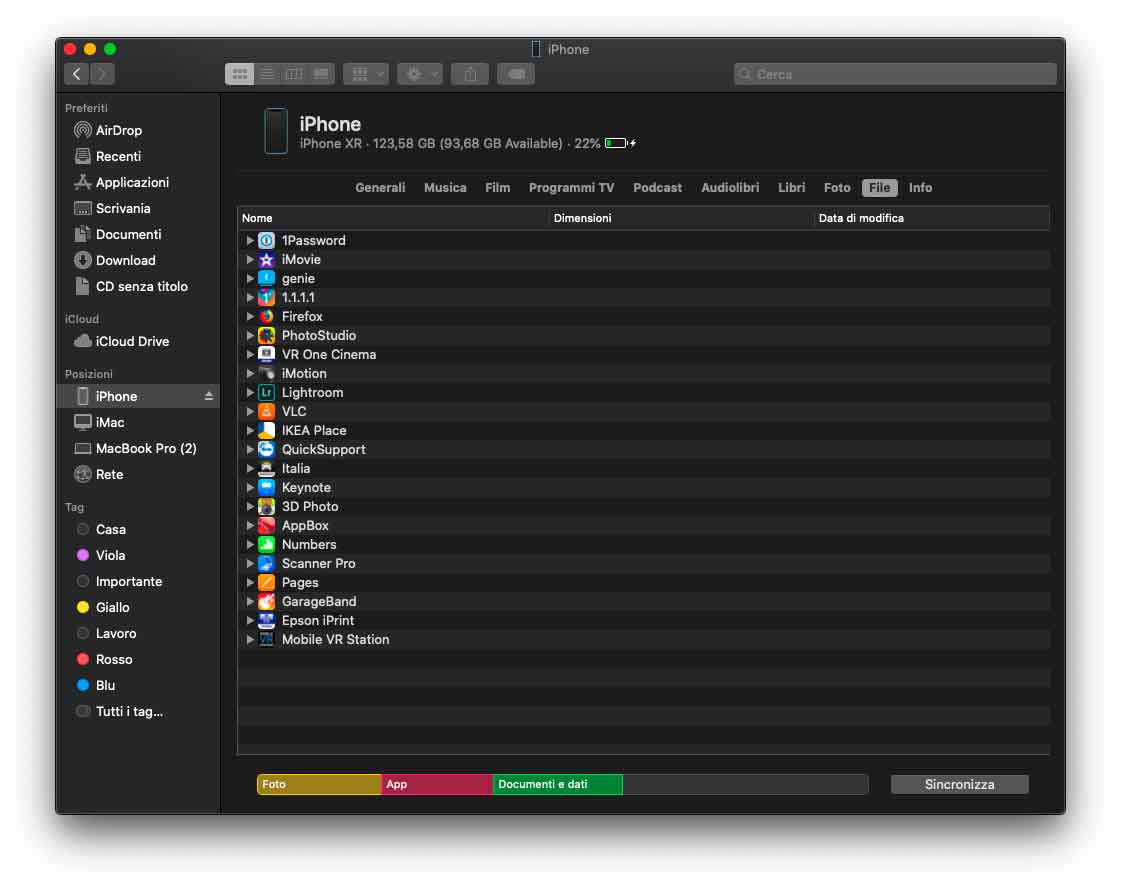 L’iPhone dal Finder