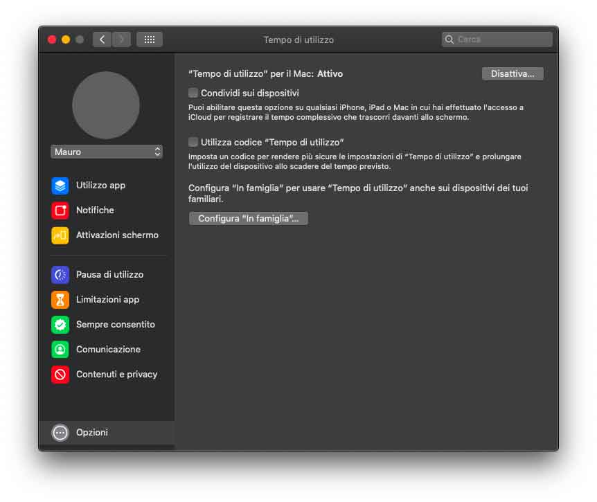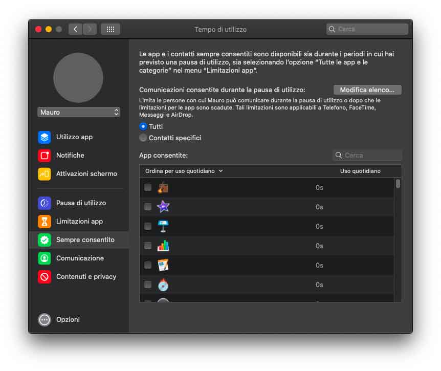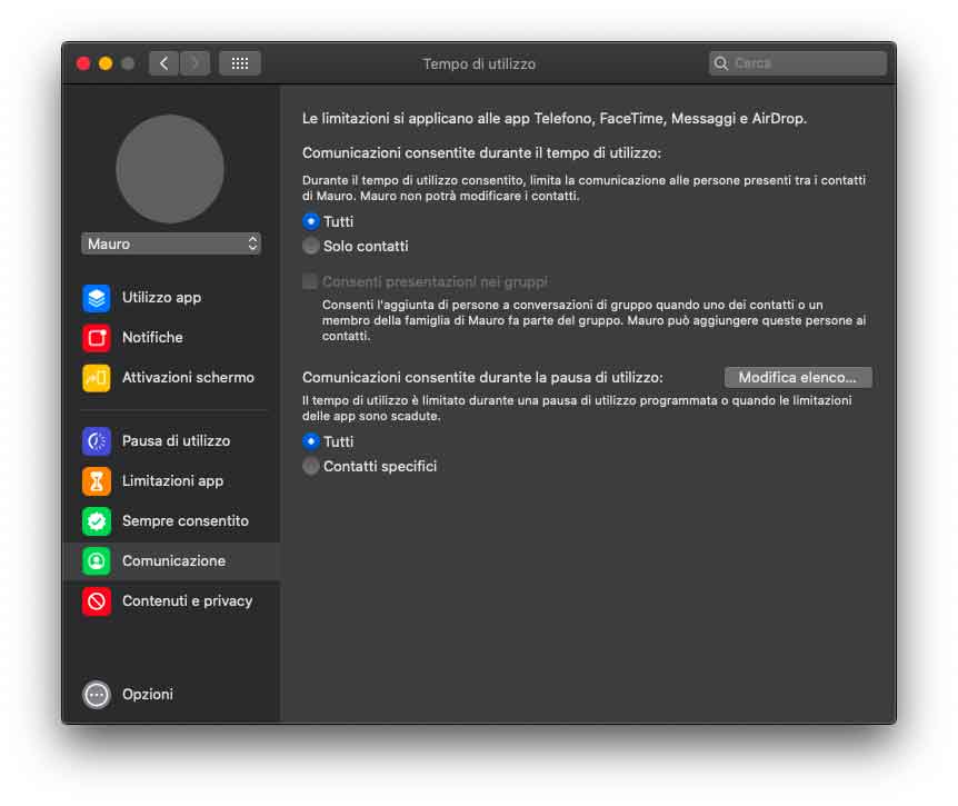 Nuova è la sezione “Tempo di utilizzo”. Questa fornisce agli utenti una panoramica e strumenti per aiutarli a monitorare e impostare il tempo che trascorrono su app e siti web. Lo strumento in questione è pensato per il modo in cui le persone usano il Mac e include una nuova funzione “One more minute” che lascia agli utenti più tempo per salvare il loro lavoro o uscire da un gioco. È possibile pianificare il tempo di inutilizzo del Mac e decidere quanto tempo trascorrere in app, siti web o categorie di app. Con iCloud, si possono sincronizzare le impostazioni di “Tempo di utilizzo” e combinare l’utilizzo fra iPhone, iPad e Mac privatamente tramite la crittografia end-to-end. Con “In famiglia”, i genitori hanno a disposizione nuovi strumenti per gestire al meglio l’utilizzo dei dispositivi da parte dei figli, inclusa la possibilità di scegliere con chi possono comunicare e quando.