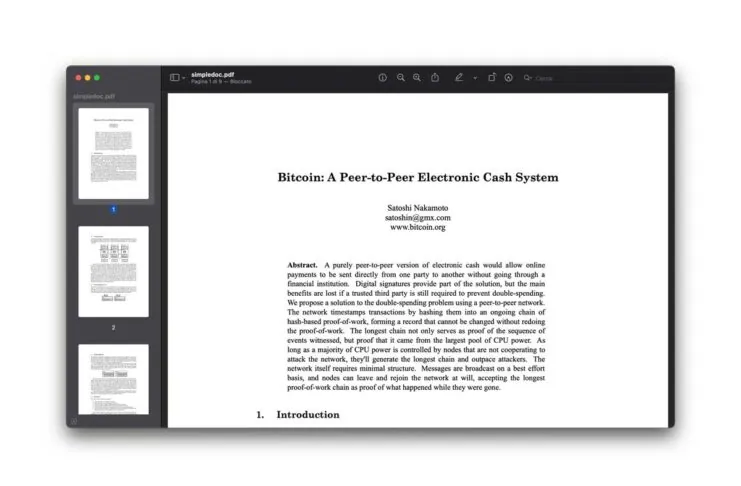 Un documento in PDF intitolato Bitcoin: A Peer-to-Peer Electronic Cash System si trova nascosto dentro ogni copia di macOS, in tutte le versioni da macOS Catalina in poi. Non è chiaro perché sia presente questo documento (sembrerebbe essere un file di esempio o di test) e il file (“simpledoc.pdf”) può essere individuato da Terminale, digitando: