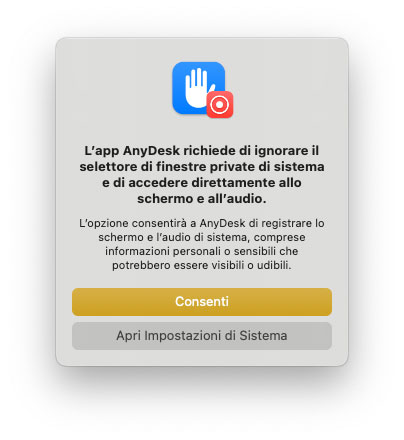 In macOS Sequoia, Apple ha aumentato alcuni livelli di sicurezza di sistema rendendo più complicata la gestione della registrazione dello schermo da parte di app di terze parti quali AnyDesk, Teamviewer e affini, rendendo necessario concedere autorizzazioni periodiche, mentre in precedenza era sufficiente concedere questo permesso al primo avvio di queste app o impostandolo da Impostazioni di Sistema > Privacy e Sicurezza > Registrazione schermo e audio.