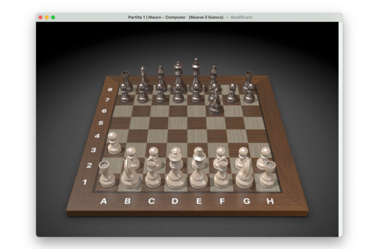 Come sempre è possibile modificare l’angolo di visualizzazione della scacchiera: facendo clic su uno qualsiasi degli angoli della scacchiera e mantenendo premuto il mouse/trackpad è possibile regolare l’angolo di visualizzazione.
