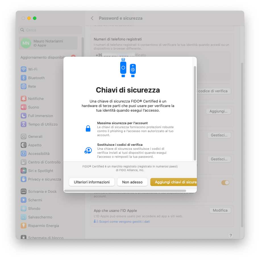 La Mela spiega che l’update a macOS Ventura 13.2 include le chiavi di sicurezza per l’ID Apple che consentono agli utenti di migliorare la protezione dell’account grazie alla richiesta di una chiave di sicurezza fisica come parte della procedura di accesso basata sull’autenticazione a due fattori sui nuovi dispositivi. Sono stati risolti alcuni bug con l’app Freeform e risolto un problema con VoiceOver che in alcuni casi scrivendo non offriva il feedback audio.