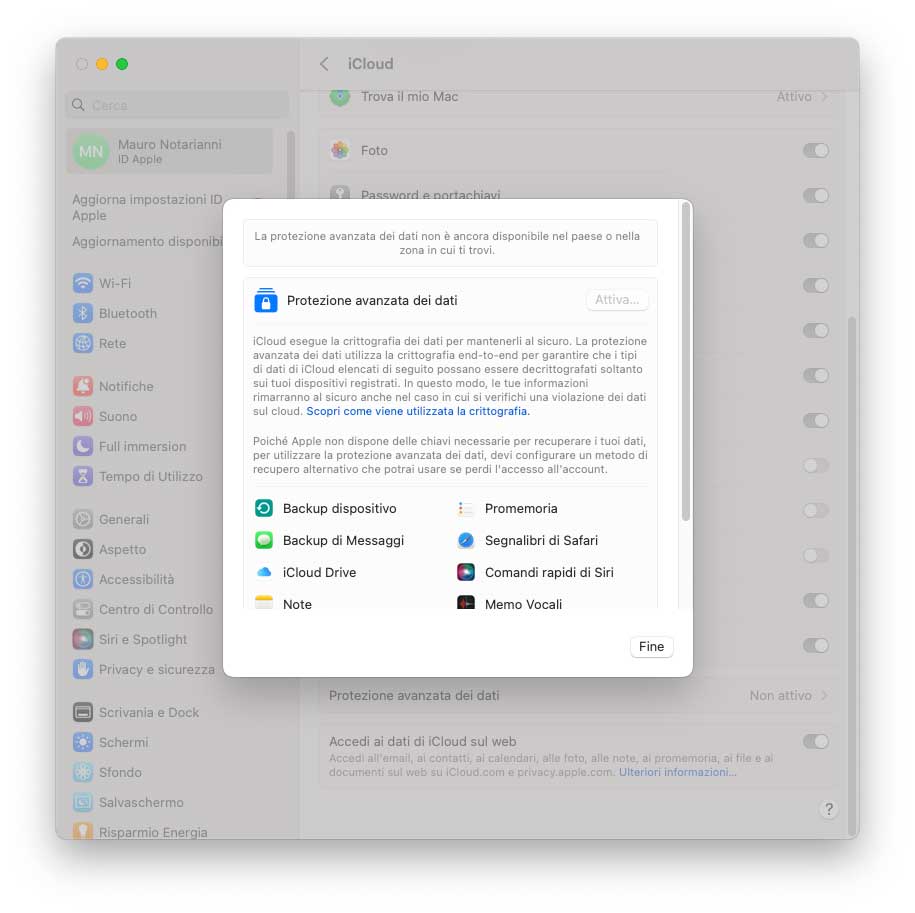 La protezione avanzata dei dati per iCloud espande a 23 il numero totale di categorie di dati di iCloud protette tramite la crittografia end‑to‑end, inclusi i backup iCloud, Note e Foto. In questo modo, le tue informazioni rimarranno al sicuro anche nel caso in cui si verifichi una violazione dei dati sul cloud.