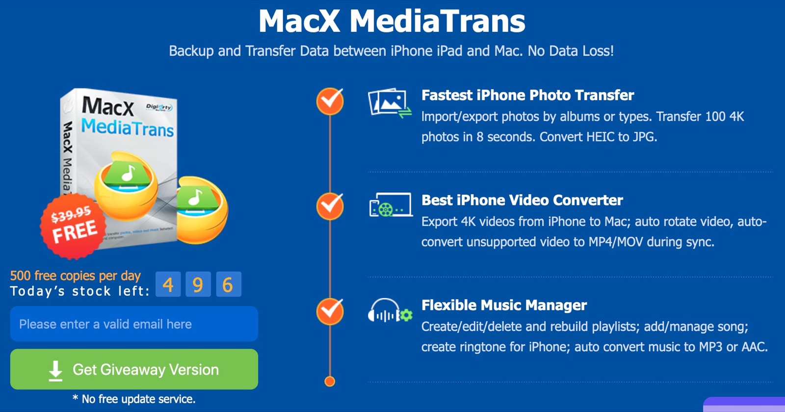 Rispetto a iTunes è migliore anche per il fatto che quest’ultimo spesso si blocca durante il trasferimento dei file, e soprattutto non è in grado di trasferire su iPhone le canzoni che non sono presenti nella libreria; con MacX MediaTrans invece potete trasferire su iPhone e iPad tutti i brani che desiderate, senza dover perdere tempo in conversioni o altro.