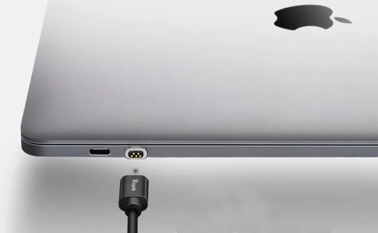 Come altre soluzioni simili il MagSafe alternativo di Vinpok è costituito da un connettore USB-C in metallo da inserire e lasciare nella porta USB-C del portatile. Il cavo abbinato incluso è dotato di magneti che mantengono il collegamento ma che si possono sganciare in caso di strattoni al filo, evitando rovinose cadute del notebook.