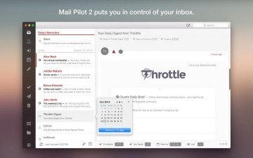 Mail Pilot 2 è la nuova versione di un apprezzato client iOS e OS X per la gestione della posta elettronica che ha la peculiarità di considerare i messaggi alla stregua di compiti da portare a termine. Il concetto è quello delle liste “to-do” con possibilità di impostare al volo cosa fare. È ad esempio possibile marcare i messaggi per leggerli in un secondo momento, oppure sfruttare le funzioni più avanzate per attivare flussi di lavoro dedicati a particolari mittenti.