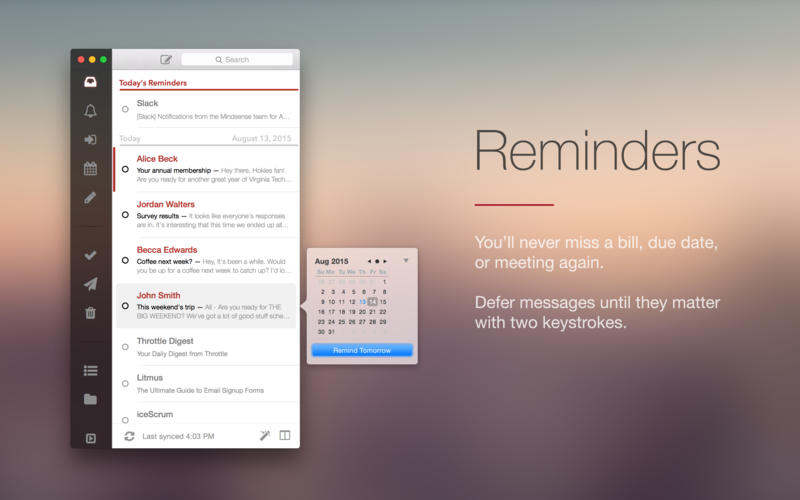 Lo sviluppo dell’applicazione è stato possibile grazie ad un progetto partito su Kickstarter tre anni addietro. È arrivata prima la versione per iOS (iPhone e iPad) e poi la versione per Mac. Una serie di comode scorciatorie permettono di inviare una risposta rapida ai messaggi, così come archiviarli all’interno di una cartella già presente o su una particolare lista dedicata. È possibile gestire firme e le classiche impostazioni inerenti i vari profili, eseguire velocemente ricerche e molto altro.