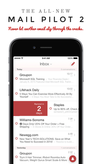 Mail Pilot 2 è la nuova versione di un apprezzato client iOS e OS X per la gestione della posta elettronica che ha la peculiarità di considerare i messaggi alla stregua di compiti da portare a termine. Il concetto è quello delle liste “to-do” con possibilità di impostare al volo cosa fare. È ad esempio possibile marcare i messaggi per leggerli in un secondo momento, oppure sfruttare le funzioni più avanzate per attivare flussi di lavoro dedicati a particolari mittenti.