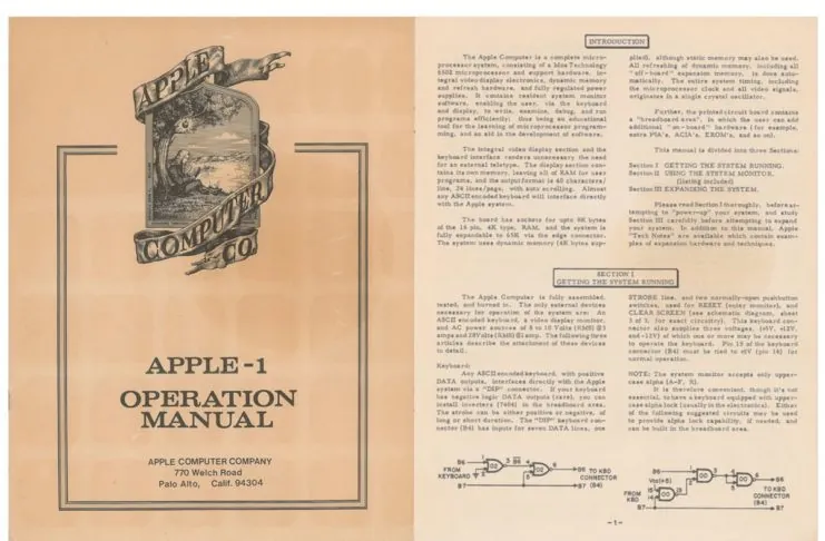 All’apparenza un libretto di carta ingiallita, che a qualcuno potrebbe non dire niente, mentre potrebbe emozionare molti altri: è il manuale di Apple I, non un semplice libretto delle istruzioni, ma il libretto che accompagnava e spiegava il funzionamento del computer che ha segnato la nascita di Apple, uno dei primissimi computer personali da cui è poi nata la rivoluzione informatica degli anni ’80.