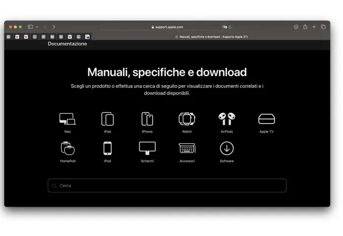 Apple ha creato una nuova sezione nel suo sito sito web, uno luogo virtuale dove è possibile trovare “Manuali, specifiche e download”.