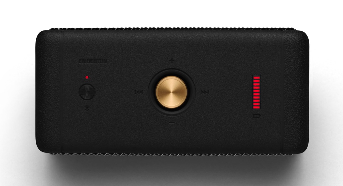Una particolarità del Marshall Emberton rispetto ad altri sta nella manopola inclinabile con cui è possibile controllare la riproduzione musicale e il volume direttamente dalla cassa: se non altro è una soluzione diversa dai più consueti pulsanti meccanici o touch.