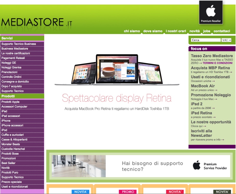 I negozi Mediastore, Apple Premium Reseller di Milano, propongono diverse promozioni interessanti sia per chi è già utente Mac, sia per chi ha deciso di abbandonare il PC per passare ad Apple. Infatti acquistando un portatile MacBook Pro Retina si ottiene in regalo un disco fisso esterno Toshiba da 1TB, perfetto per estendere la capacità di registrazione dati del notebook, per conservare foto e video e anche per creare copie di sicurezza con Time Machine.