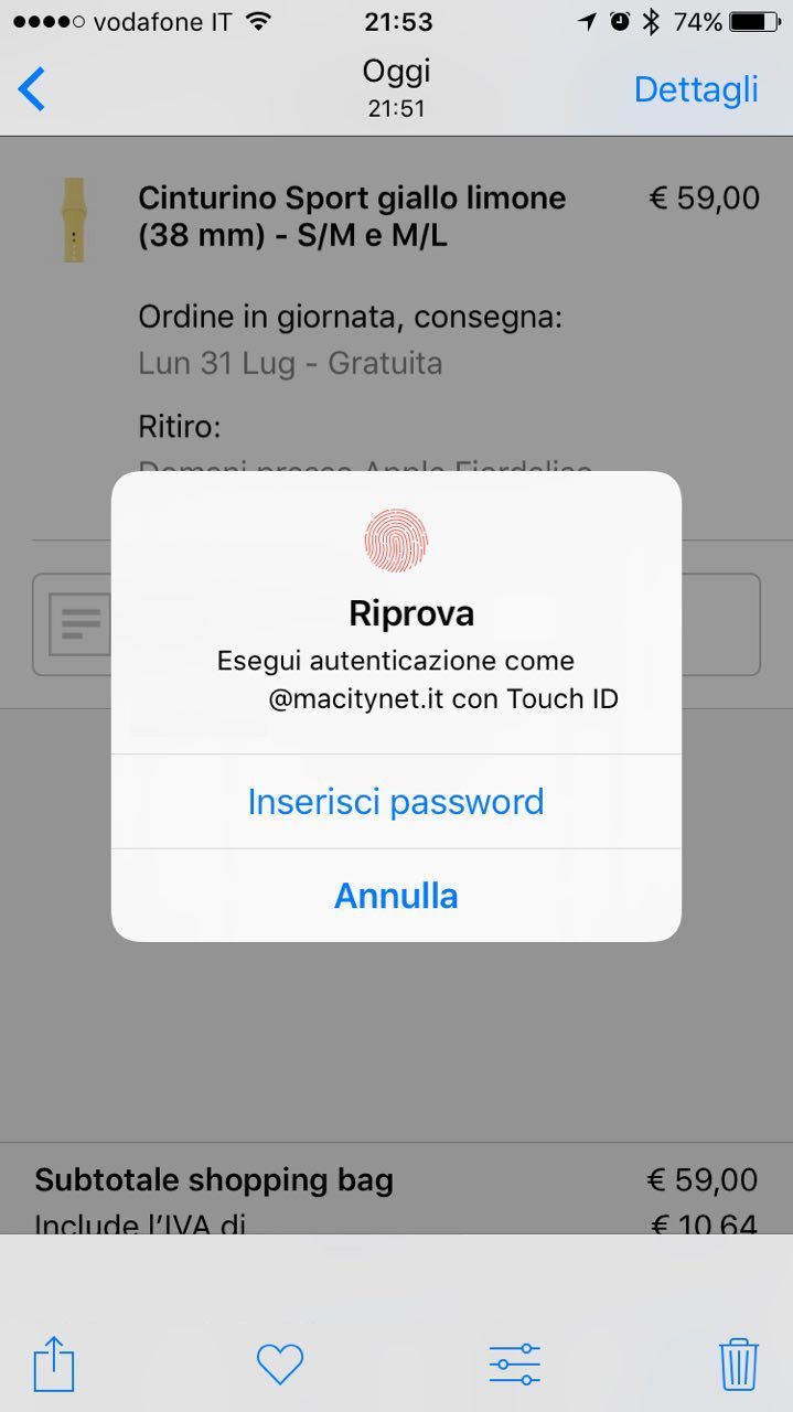 – Con Touch ID e il tuo ID Apple puoi pagare il tuo ordine in modo facile e sicuro, e anche cambiare le impostazioni dell’account.