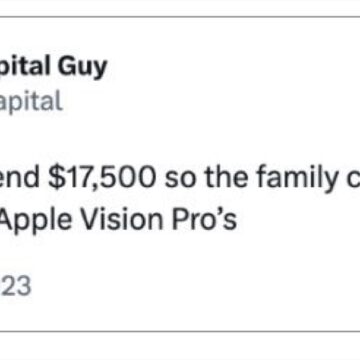 Siamo solo agli inizi e indubbiamente nei prossimi giorni nuovi meme dalla rete spezzeranno la monotonia delle nostre giornate. Probabilmente gli unici ad essere risparmiati saranno i dirigenti Apple, che come ci fa notare Gurman sono stati ben attenti a non farsi fotografare con indosso il visore: lo stesso Tim Cook se ne è tenuto a debita distanza, sorridendo verso l’obiettivo come si farebbe in una foto tra amici, e non certo con il proprio figlio tra le braccia.