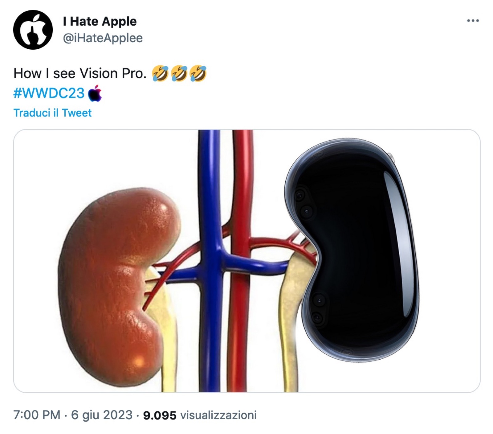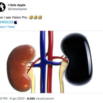 C’è poi chi nella forma intravede un rene, non velato ammiccamento al fatto che per comprare il visore ci si deve vendere proprio questo organo (dimenticandosi magari che è già successo davvero ai tempi di iPad che pure costava molto meno) e qualcun altro che consiglia di risparmiare spendendo 20$ per un sacchetto di funghetti allucinogeni più che sufficienti per un “trip” simile a quello che rende possibile il Visor Pro