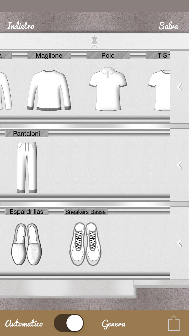 L’app si contraddistingue per una facilità d’uso esemplare, al primo avvio ci chiederà se vogliamo fare un armadio da uomo o da donna, sceglieremo se visualizzare un armadio classico o moderno, e subito dopo saremo pronti all’uso vero e proprio. Si inizierà fotografando e catalogando in un’unica operazione i nostri capi d’abbigliamento, sceglieremo dal vasto elenco di tipologia di indumento quello che stiamo per fotografare e l’app ci proporrà la maschera adeguata all’interno della quale inquadrare il nostro capo, scattata la fotografia indicheremo il colore di base dell’oggetto, sempre scegliendo dall’elenco proposto, ed un eventuale colore secondario per abiti con più di un colore; naturalmente potremo archiviare magliette, scarpe, pantaloni, ma anche felpe con e senza cappuccio, mantelle, infradito, sneakers alte o basse, shorts di diversi tipi, tuniche, blazer, canotte e via dicendo, per ogni singolo capo inoltre saremo in grado di indicare se indossarlo in una o più stagioni dell’anno.