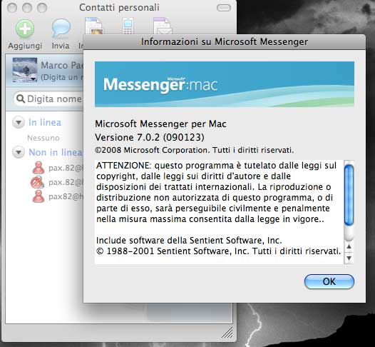 Microsoft ha aggiornato Messenger, il client per la messaggistica istantanea con il quale è possibile comunicare con altri utenti Mac e PC. La nuova versione risolve solo alcuni bug e – a detta di Microsoft – migliora “la qualità complessiva della conversazione con Office Communicator 2007 R2”.