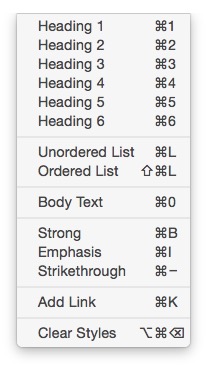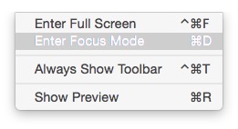 La modalità full screen (manca però il night mode), la modalità “Focus” (che rende sfocato il testo a parte quello della frase che si sta scrivendo o editando: manca però la modalità “macchina per scrivere” con il testo in scrittura sempre a metà schermo), le scorciatoie di tastiera per arrivare a mettere le principali tag del Markdown: sei livelli di titolo, liste numerate e non, grassetto, corsivo, barrato, link (in linea). C’è praticamente tutto. Cioè, a essere pignoli mancano un paio di cosette come le scorciatoie per mettere le citazioni e testo-codice.
