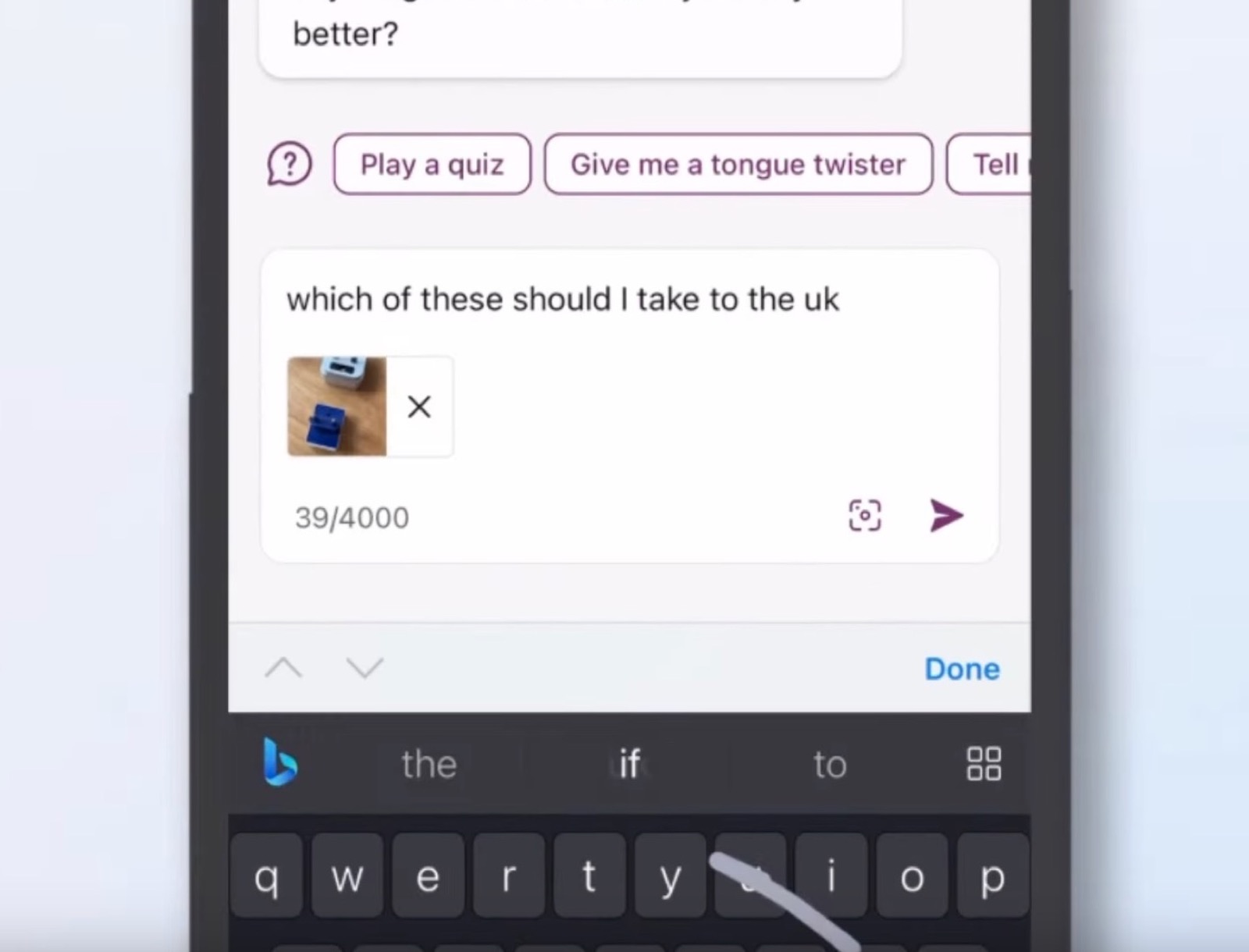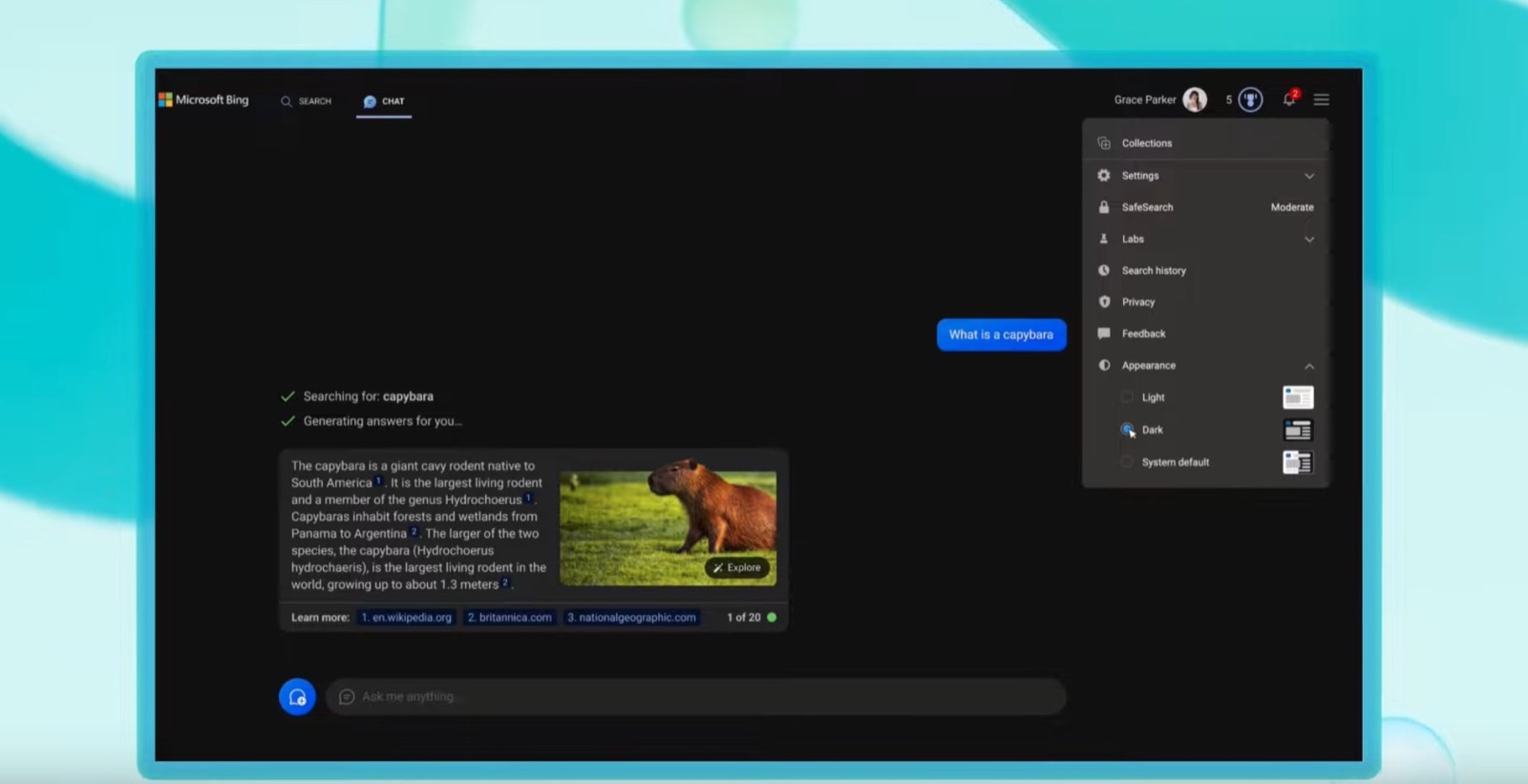 Dall’apertura limitata a pochi utenti, quella di fine luglio, chattare con Bing AI dai browser di terze parti vuol dire anche convivere col limite di 2.000 parole per prompt contro le 4.000 che si possono inserire invece sul browser Edge di Microsoft, oltre al fatto ch le conversazioni vengono ripristinate dopo appena 5 query anziché 30.