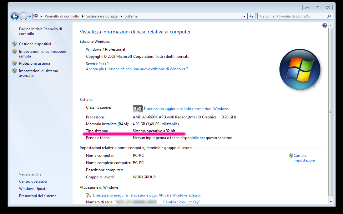 Come faccio a sapere se su un PC è in esecuzione Windows a 32 o 64 bit?