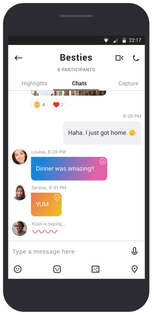 I primi commenti al nuovo design mostrato da Microsoft hanno comunque sottolineato come l’interfaccia abbia ereditato molti aspetti da Snapchat. Le chat di gruppo sono più vivaci, espressive e personalizzate, e c’è una nuova sezione Highlights, molto simile alle Stories di Snapchat, che consente agli utenti di condividere foto o video.
