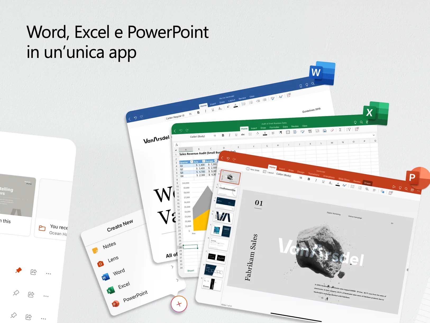 In pratica ora ci sono due modi per ottenere Office nell’iPhone. È possibile installare la nuova app di Office che combina Word, Excel e PowerPoint in una singola app e introduce le nuove caratteristiche per dispositivi mobili per visualizzare, modificare e condividere file senza dover passare da più app. In alternativa, è possibile installare le app di Office (Word, Excel, PowerPoint) singolarmente nell’iPhone o nell’iPad.