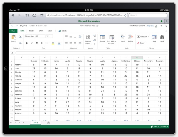 - Office per iPad, versioni complete con funzionalità di editing di Word, Excel, PowerPoint