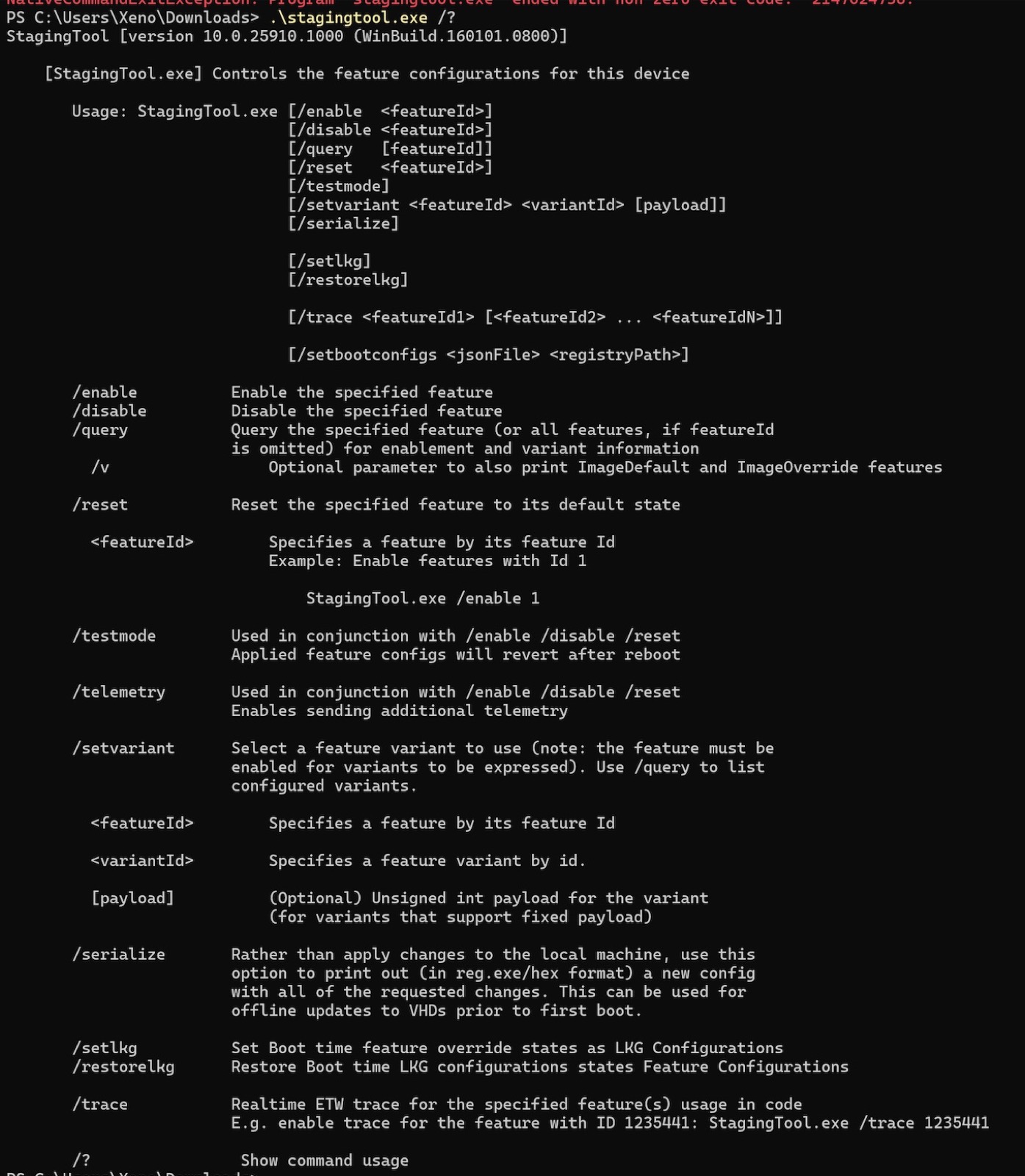 È molto simile al ViveTool, uno strumento di terze parti usato da anni dalla community per attivare le funzioni nascoste di Windows 11, ma che rende le cose molto più semplici e “ufficiali”, visto che si tratta proprio dello stesso strumento interno usato dagli ingegneri Microsoft per andare a testare le funzioni ancora in prova prima della distribuzione pubblica.