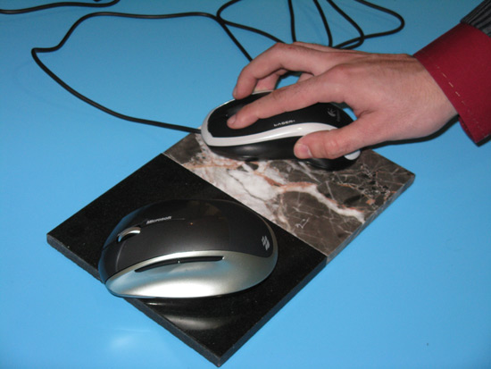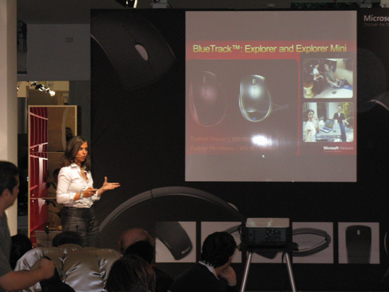 Nello showroom milanese della presentazione Microsoft erano presenti alcune postazioni in cui era possibile testare i due nuovi mouse con tecnologia BlueTrack e confrontarli con i tradizionali mouse laser. Anche su marmo e granito, dove i mouse con laser a luce rossa risultano inutilizzabili, i nuovi BlueTrack offrono un controllo preciso sorprendente. Explorer Mouse è un mouse elegante e dal design ricercato e, come il modello più piccolo per notebook Explorer Mini Mouse, è riconoscibile dalla caratteristica luce blu emessa sulla superficie di appoggio.