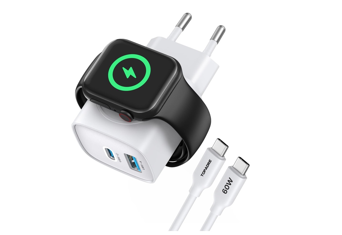 L’Apple Watch, come gli iPhone, è venduto senza caricabatterie nella scatola ma hanno un cavo USB-C che è capace di ricaricare lo smart watch molto velocemente. Per questo vi serve un caricabatterie Cube PowerPort III. Si tratta di un caricabatterie potente e piccolissimo; offre supporto Power Delivery, che eroga 20W perfetto per tutti gli smartphone, iPhone, tablet, computer portatili ma anche per lo smart watch Apple. Tra gli elementi degni di nota ci sono le dimensioni: questo caricabatterie è più piccolo del caricabatterie da 5W che Apple metteva dentro ad alcuni dei suoi telefoni fino a poco tempo fa. Se volete caricare più dispositivi (inclusi tutti gli ultimi Mac), questo accessorio sempre di Ugreen da 140W, due porte USB-C e una USB-A è attualmente il migliore del mercato.
