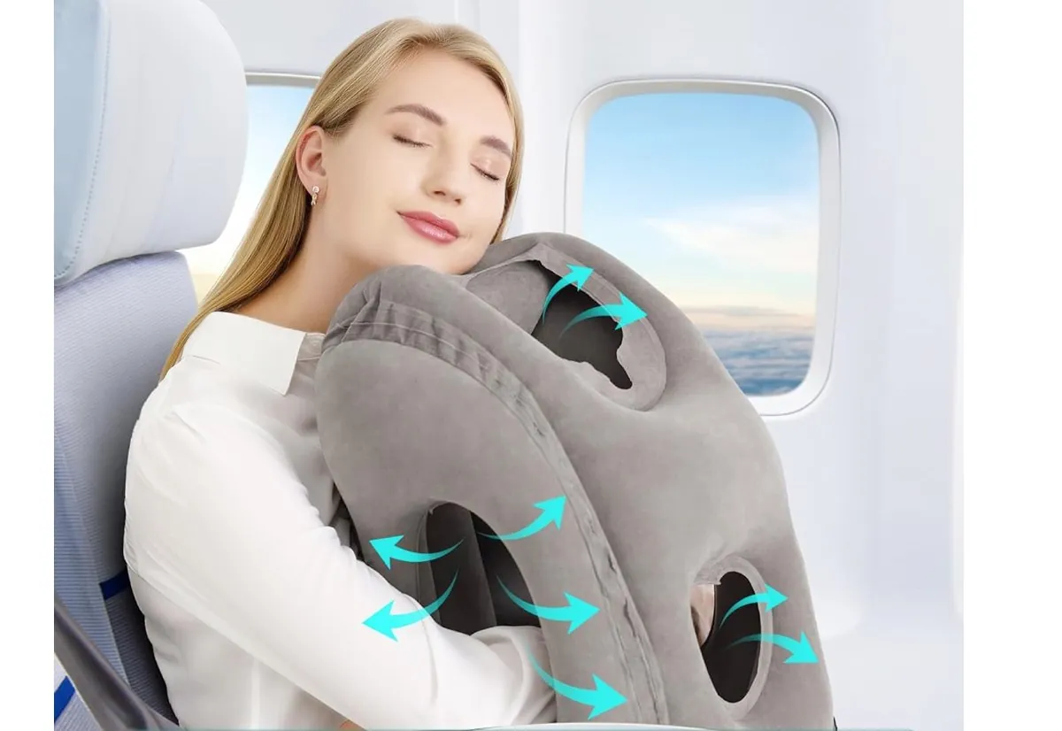 Il secondo cuscino che vi segnaliamo si offre a persone con preferenze “ergonomiche” differenti. In pratica, una volta gonfiato, supporta tutto il busto consentendone una naturale inclinazione. Ha un design con una serie di incavi che permettono di tenere le braccia conserte e di sorreggerle nello stesso tempo, consentendo un pieno rilassamento.