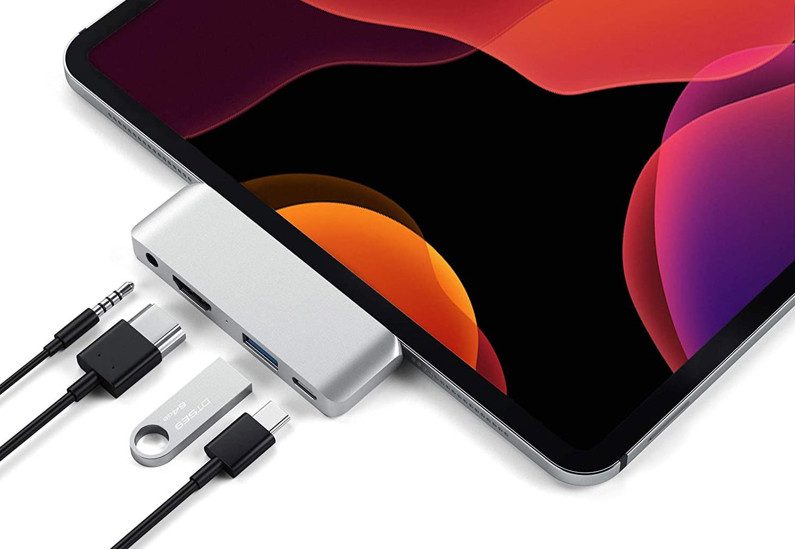 La stragrande maggioranza degli HUB USB-C sono compatibili con iPad (non sono utilizzabili solo quelli con due connettori abbinati) ma il Satechi Adattatore Tipo-C Mobile Pro, nasce proprio con in mente il tablet di Apple. Offre due porte USB-A, un jack 3,5mm per collegare delle cuffie o auricolarie una porta USB-C per la ricarica o il collegamento di un dispositivo USB-C (ma attenzione al carico sulla batteria dei dispositivi connessi alle porte USB-A). È perfetto per collegare chiavette, mouse, display eccetera. Grazie a questo accessorio potrete trasformare l’iPad in un vera e proprio computer senza molte limitazioni almeno dal punto di vista della connettività.