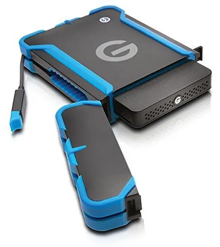 Gli hard disk ev Raw hanno già una buona resistenza con il loro speciale case in gomma e l’interfaccia SATA esterna possono essere utilizzati sia direttamente che, una volta tolta la gomma, sia con la la custodia speciale ATC con USB (costo sui 50 Euro) che in in quella ATC con Thunderbolt (costo sui 150 Euro) che essere inseriti nei sistemi RAIDG-Speed Studio XL di G-Technology.