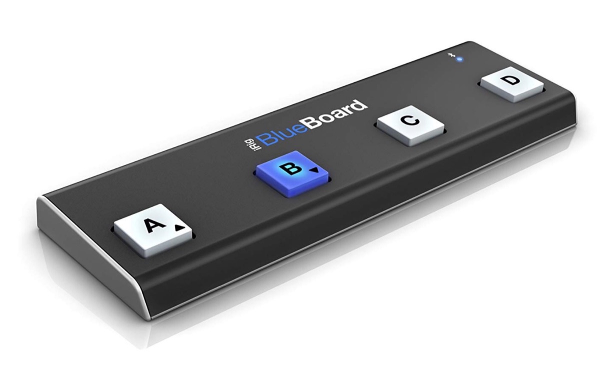 Un ottimo prodotto è anche la BlueBoard di IK Multimedia. E’ in vendita per 126 euro ed è una pedaliera MIDI progettata appositamente per funzionare con iPhone, iPad e Mac. I quattro pedali soft-touch permettono di attivare e disattivare gli effetti, controllare il volume di un pedale Wah. Il collegamento è sempre Bluetooth mentre l’alimentazione avviene attraverso quattro batterie ministilo AAA. Tra le varie applicazioni compatibili segnaliamo VocaLive, SampleTank, iGrand Piano e molte altre, come GarageBand di Apple.