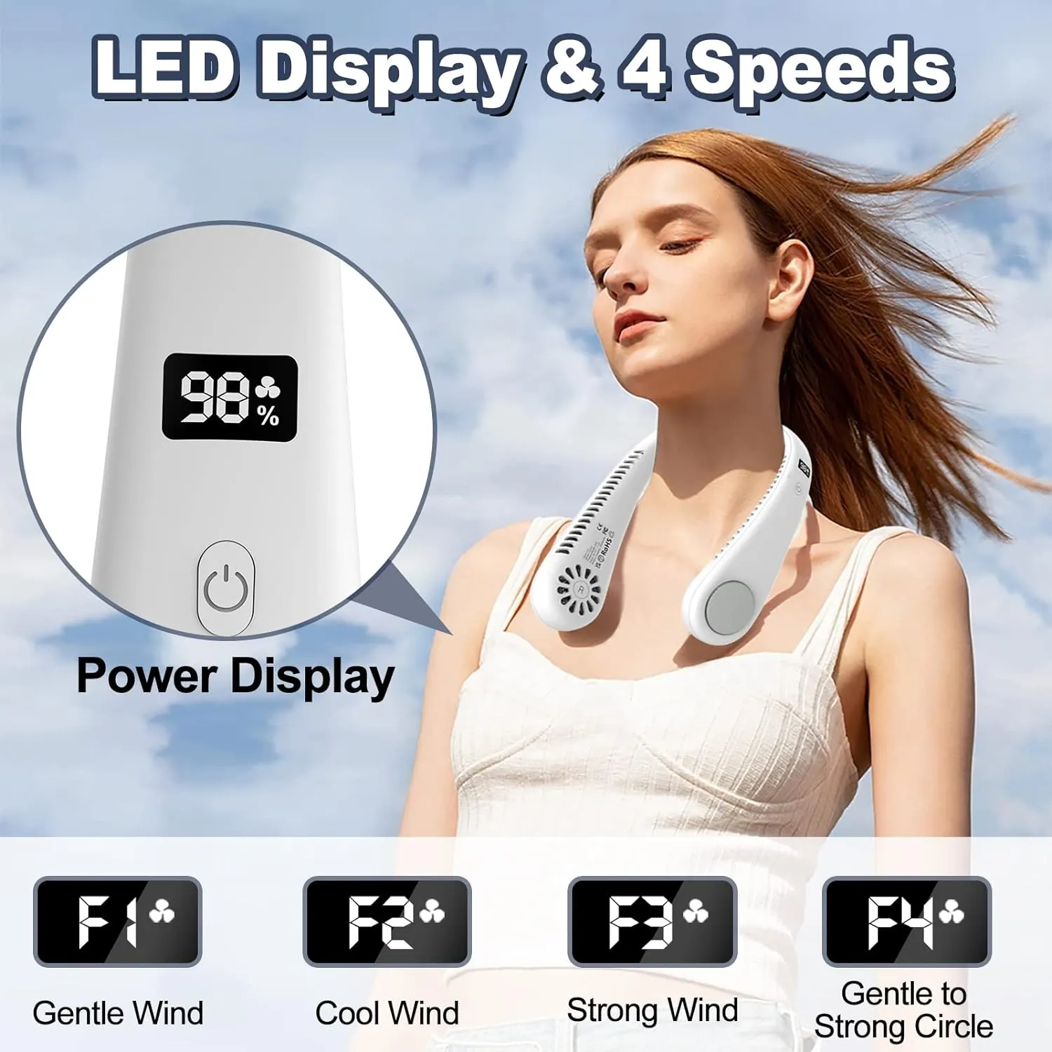 Ha 4 velocità regolabili, è realizzato con materiali ecologici e non crea alcun disagio se indossato per lungo tempo. Grazie al sistema bladeless, non ci si deve preoccupare che i capelli lunghi si impiglino nella ventola.