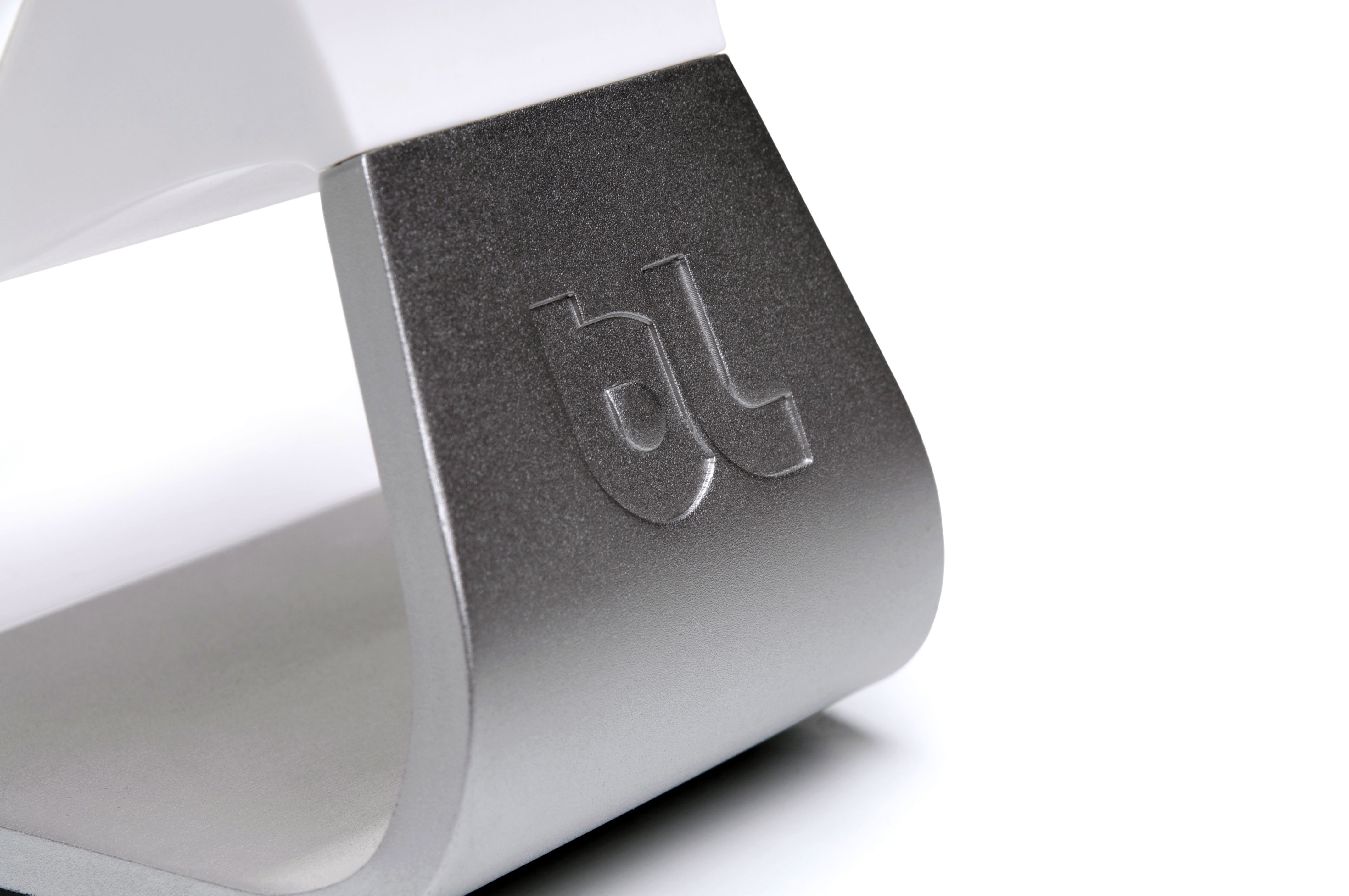 Il Milo di Bluelounge appare come un prodotto semplicissimo. Si tratta di un supporto molto lineare, realizzato in alluminio e completato da due cuscinetti in materiale sintetico, uno nella parte inferiore e uno nella parte superiore, dove andremo ad appoggiare l’iPhone. In realtà questo prodotto studiato dalla geniale Bluelounge, un’azienda specializzata in accessori di cui parleremo ancora in futuro, usa una tecnologia speciale che consente di stabilizzare il supporto sulla scivania e di sorreggere iPhone, senza incavi, ganasce, incastri. Sono i due elementi in materiale sintetico che fanno tutto il lavoro appiccicando iPhone al supporto e il supporto ad una superficie liscia. In realtà il termine “appiccicare” non è corretto perché il trucco usato per fissare il supporto ad un tavolo e il supporto ad iPhone, non si fonda su un adesivo ma su un tecnologia definita a “micro aspirazione” studiata in Giappone.