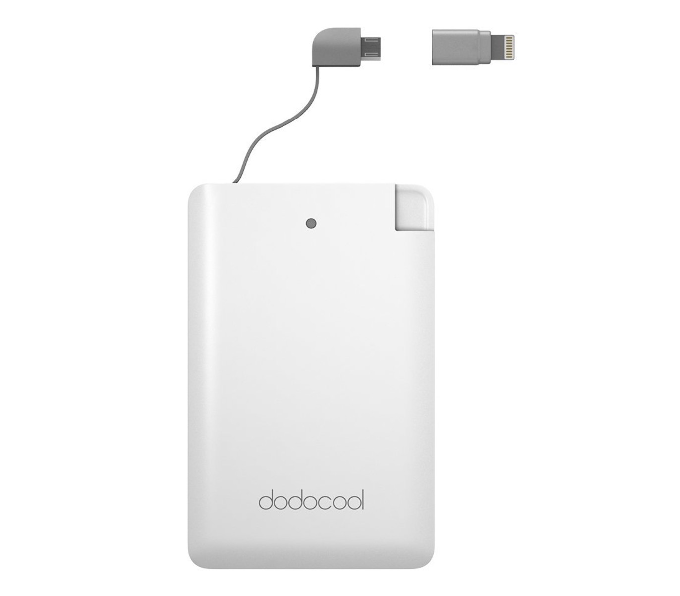 Incorpora un cavo microUSB incassato nella scocca, con tanto di adattatore Lightning nel caso si desiderasse utilizzarla con i dispositivi Apple. I suoi 2.500 mAh assicurano una ricarica completa di un iPhone 6s o una buona dose di energia (oltre il 50%) per un iPhone della serie Plus. Il tutto sparisce in un taschino della camicia.