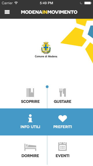 Si trovano, con pochi tap grazie all’interfaccia semplicissima di MOinMO, tutte le informazioni e le mappe per i visitatori che desiderano raggiungere in poco tempo luoghi di interesse culturale e turistico e gli hotel modenesi e per i cittadini che hanno bisogno di reperire in modo semplice tutte le informazioni su eventi, mezzi pubblici, wifi libero, fiere e mercati, orari dei negozi e dei ristoranti. Per semplificare la ricerca delle informazioni MOinMO propone cinque sezioni differenti: scoprire, dormire, eventi, info utili, gustare.