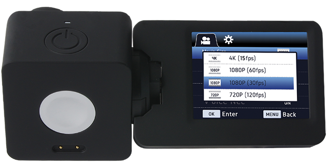 E’ ovviamente impermeabile ed offre un sensore da 16 MP per riprese grandangolari a 152 gradi in 4K a 15 fps oppure in Full HD a 60 fps. Non essendoci un display si può controllare attraverso il collegamento wireless con uno smartphone oppure attraverso uno schermo disponibile come accessorio supplementare.