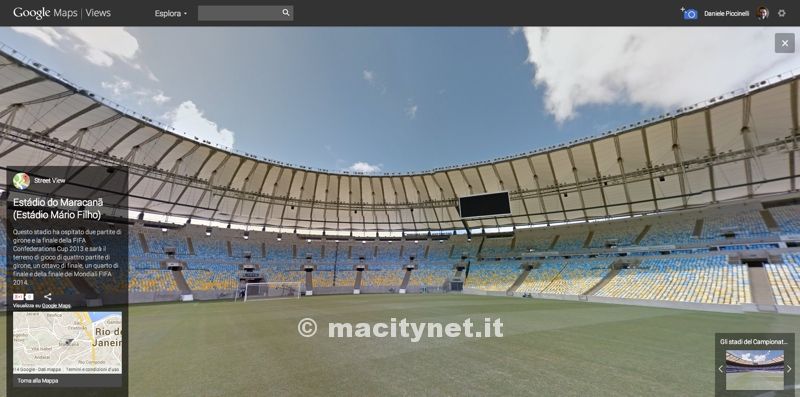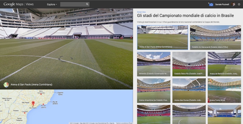 Tra pochi giorni iniziano i Mondiali Brasile di calcio: nell’attesa è ora possibile visitare il leggendario Maracana e tutti gli altri 11 stadi in cui si svolgeranno le partite grazie a Street View. L’ultimo aggiornamento rilasciato da Google infatti introduce la copertura fotografica di tutti gli stadi della Coppa del Mondo Brasile 2014, insieme alla possibilità di calcolare il percorso per raggiungerli utilizzando i mezzi pubblici, funzione utile per gli utenti che si recheranno personalmente sul posto per seguire le gare.