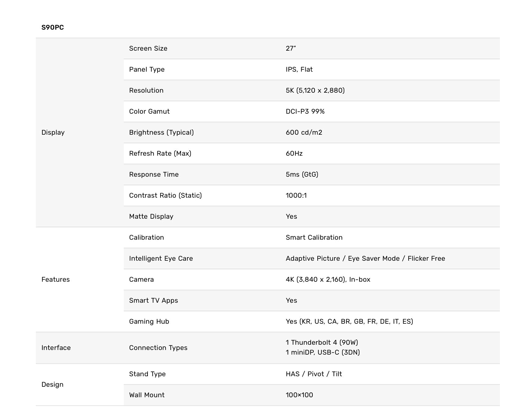 Il Samsung ViewFinity S9, presentato in anteprima a gennaio al CES (Consumer Electronics Show) di Las Vegas, dove ha vinto un CES Innovation Award, grazie alle specifiche e alla qualità, ha un pannello da da 27” con risoluzione 5K (5,120 x 2,880) con 600 nit di luminosità massima e 60 Hz di frequenza di aggiornamento.