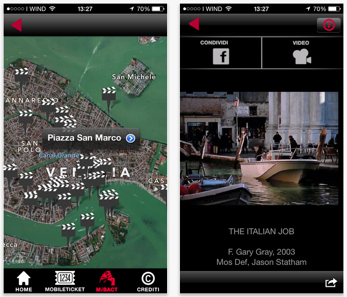 L’applicazione Biennale Cinema è una guida indispensabile alla kermesse veneziana e offre all’utente la possibilità di scoprire tutto il catalogo della Mostra del Cinema e i contenuti multimediali extra, conoscere la storia del grande Festival e i suoi protagonisti, acquistare il ticket per le proiezioni e risparmiare il tempo di attesa per l’accesso in sala, orientare i visitatori sui servizi turistici disponibili al Lido e riscoprire le location veneziane. Interessante è anche la funzione “Ciak si gira!”: tutti gli appassionati di cinema che hanno in programma una visita a Venezia nei prossimi mesi, potranno esplorare la città seguendo itinerari cineturistici dal proprio dispositivo portatile. L’app, per iPhone, è un progetto promosso dalla Direzione generale per il Cinema del Ministero dei beni e delle attività culturali del turismo in collaborazione con la Biennale di Venezia.
