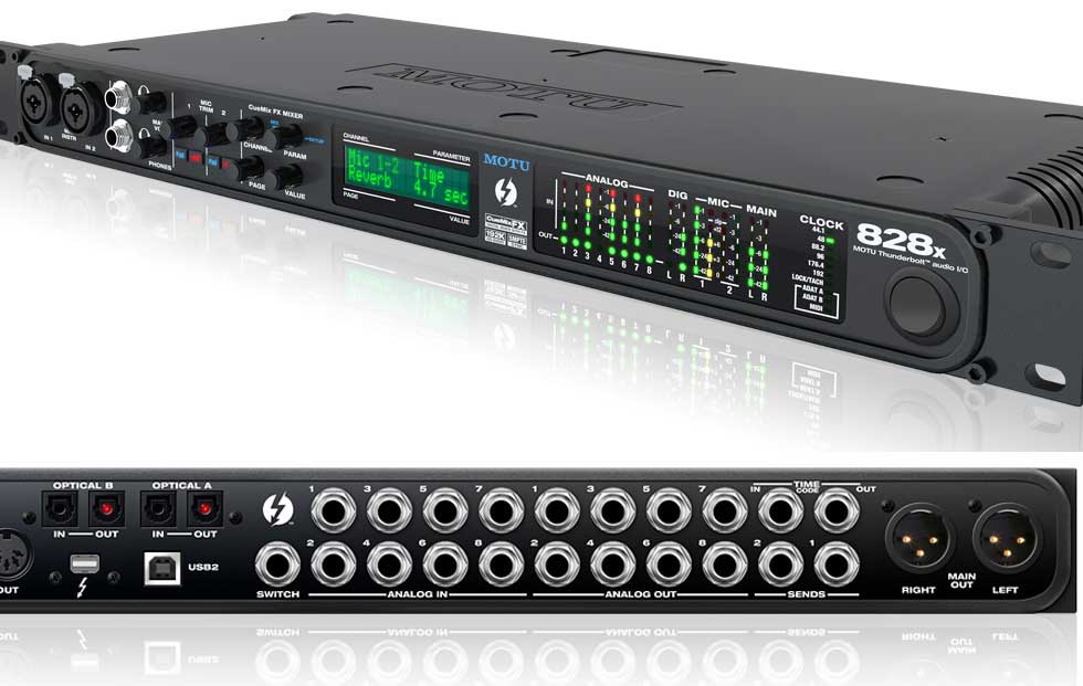 MOTU propone una nuova versione dell’interfaccia audio della serie 828, la variante 828x con connessione Thunderbolt. Benché l’interfaccia disponeva già di connessioni USB 2.0, la avriante 828x fornisce tempi dl latenza ancora pià ridotti grazie a Thunderbolt, permettendo la veloce gestione in applicazioni che utilizzano molta banda passante.