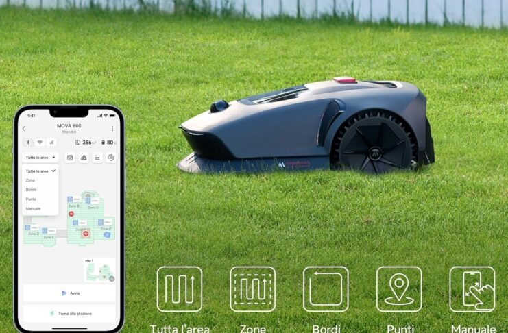 Amazon sconta ancora il MOVA 600 Robot tosaerba, un dispositivo senza fili per la gestione autonoma del prato. nche se non siamo ai minimi del Prime Day il prezzo passa da 999€ a 849€ su Amazon, pochi per un prodotto con configurazione smart e tecnologia LiDAR 3D per la mappatura precisa del giardino senza l’uso di cavi o stazioni RTK.