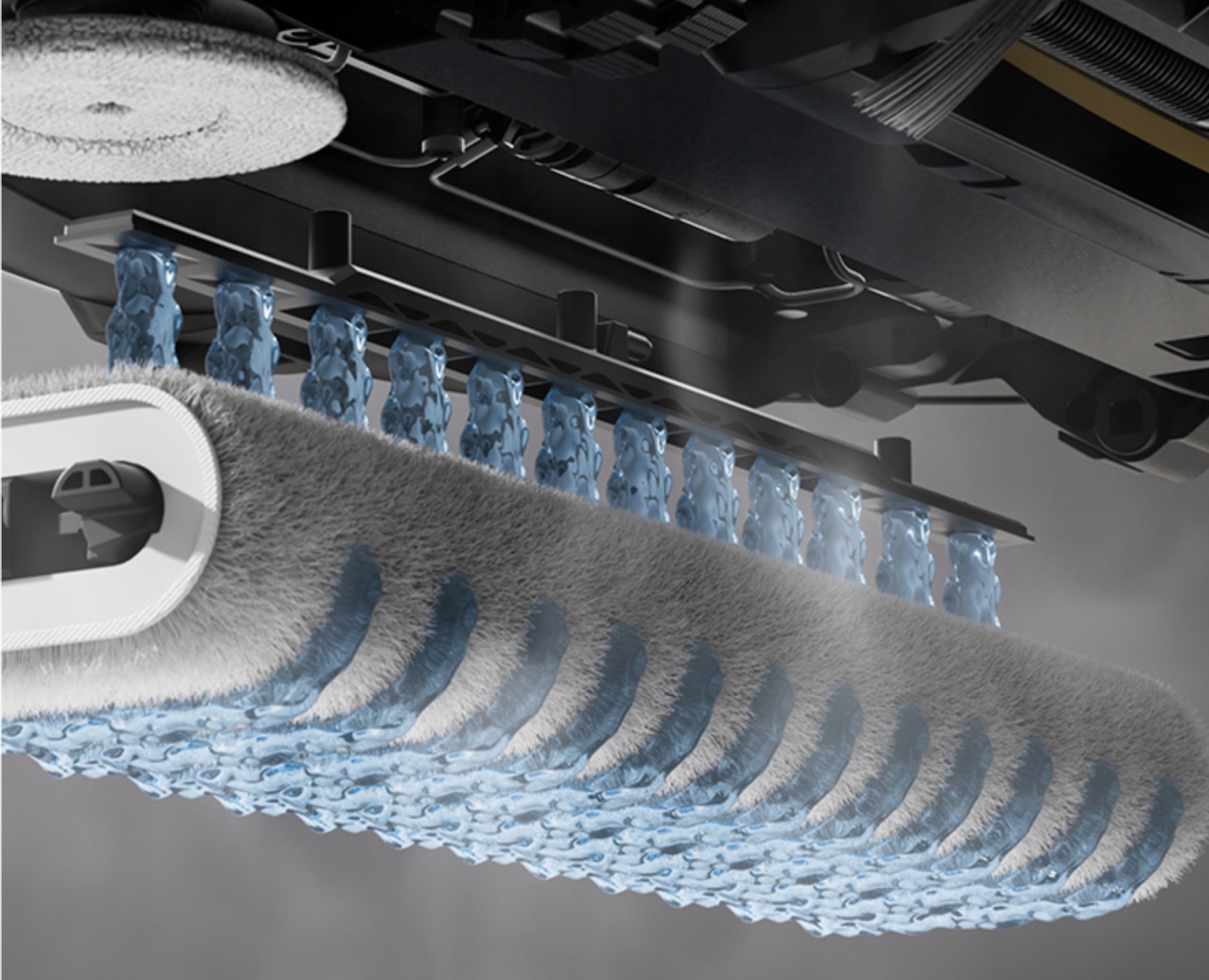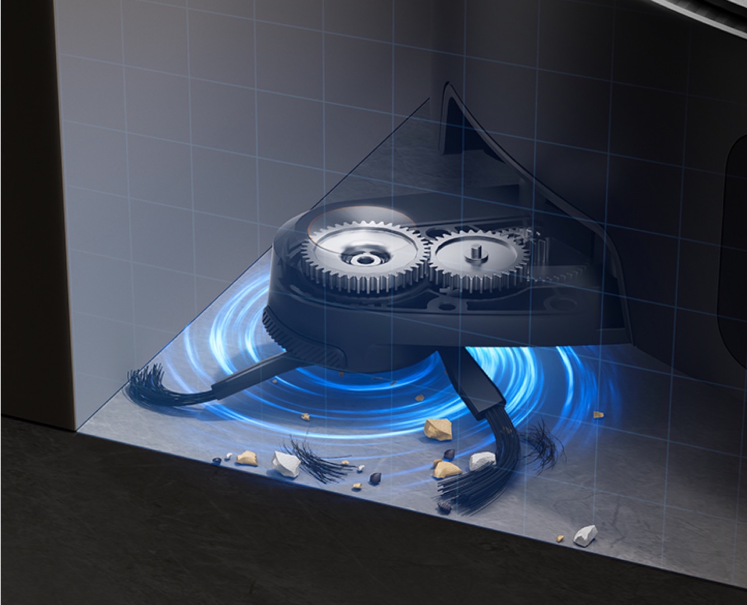 Il robot è anche dotato di una spazzola laterale estensibile per raggiungere gli angoli, e di un mocio progettato per agire anche in spazi stretti.